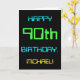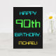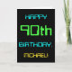 Este sencillo y divertido diseño de tarjetas de felicitación de cumpleaños incluye un mensaje como "FELIZ 90 cumpleaños, MICHAEL!". También presenta una apariencia divertida inspirada en la informática digital. El nombre en la parte delantera y el mensaje en el interior se pueden personalizar. Podría ser enviado o dado a alguien que esté celebrando su cumpleaños número noventa, y que tal vez trabaje como programador de computadoras, desarrollador de software, administrador de bases de datos, administrador de redes, ingeniero de electrónica, o que de otra manera disfrute usando computadoras. [~Z0000100]