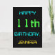 Este sencillo y divertido diseño de tarjetas de felicitación de cumpleaños incluye un mensaje como "¡FELIZ CUMPLEAÑOS, JENNIFER!". Su aspecto está inspirado en el campo de la computación digital. El nombre en la parte delantera y el mensaje en la parte interior se pueden personalizar. Se podría enviar o dar a alguien que esté celebrando su undécimo cumpleaños, y que tal vez trabaje como programador de computadoras, desarrollador de software, administrador de bases de datos, administrador de redes, ingeniero de electrónica, o que de otra manera disfrute usando computadoras. [~Z0000100]