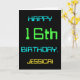 Este sencillo y divertido diseño de tarjetas de felicitación de cumpleaños incluye un mensaje como "¡FELIZ CUMPLEAÑOS 16, JESSICA!". Su aspecto está inspirado en el campo de la computación digital. El nombre en la parte delantera y el mensaje en la parte interior se pueden personalizar. Se podría enviar o dar a alguien que esté celebrando su decimosexto cumpleaños, y que tal vez trabaje como administrador de sistemas informáticos, programador de computadoras, administrador de redes, ingeniero eléctrico, desarrollador de software o a quien de otra manera le guste usar computadoras. [~Z0000100]