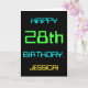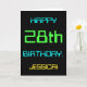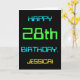 Este sencillo y divertido diseño de tarjetas de felicitación de cumpleaños incluye un mensaje como "¡FELIZ cumpleaños 28, JESSICA!". Su apariencia está inspirada en el campo de la computación digital. El nombre en la parte delantera y el mensaje en la parte interior se pueden personalizar. Se podría enviar o dar a alguien que esté celebrando su 28 cumpleaños, y que tal vez trabaje (o trabaje antes del retiro) como programador de computadoras, desarrollador de software, administrador de bases de datos, administrador de redes, ingeniero de electrónica, o que de otra manera disfrute usando computadoras. [~Z0000100]
