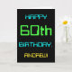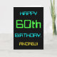 Este sencillo y divertido diseño de tarjetas de felicitación de cumpleaños incluye un mensaje como "¡FELIZ 60 cumpleaños, ANDREW!". También presenta un aspecto divertido inspirado en la computación digital. El nombre en la parte delantera y el mensaje en la parte interior se pueden personalizar. Se podría enviar o dar a alguien que esté celebrando su sexagésimo cumpleaños, y que tal vez trabaje como administrador de bases de datos, programador de computadoras, administrador de redes, desarrollador de software, ingeniero eléctrico o que de otra manera disfrute usando computadoras. [~Z0000100]