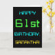 Este sencillo y divertido diseño de tarjetas de felicitación de cumpleaños incluye un mensaje como "¡FELIZ CUMPLEAÑOS 61, SAMANTHA!". Su aspecto está inspirado en el campo de la computación digital. El nombre en la parte delantera y el mensaje en la parte interior se pueden personalizar. Se podría enviar o dar a alguien que esté celebrando su primer cumpleaños, y que tal vez trabaje (o trabaje antes de su retiro) como programador de computadoras, desarrollador de software, administrador de bases de datos, administrador de redes, ingeniero de electrónica, o que de otra manera disfrute usando computadoras. [~Z0000100]