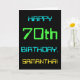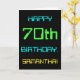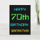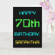 Este sencillo y divertido diseño de tarjetas de felicitación de cumpleaños incluye un mensaje como "¡FELIZ CUMPLEAÑOS 70, SAMANTHA!". También presenta una apariencia divertida inspirada en la computación digital. El nombre en la parte delantera y el mensaje en la parte interior se pueden personalizar. Se podría enviar o dar a alguien que esté celebrando su septuagésimo cumpleaños, y que tal vez trabaje como administrador de sistemas informáticos, programador de computadoras, administrador de redes, ingeniero eléctrico, desarrollador de software o a quien de otra manera le guste usar computadoras. [~Z0000100]