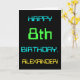 Este sencillo y divertido diseño de tarjetas de felicitación de cumpleaños incluye un mensaje como "¡FELIZ CUMPLEAÑOS, ALEXANDER!". Su apariencia está inspirada en el campo de la computación digital. El nombre en la parte delantera y el mensaje en la parte interior se pueden personalizar. Se podría enviar o dar a alguien que esté celebrando su octavo cumpleaños, y que tal vez trabaje como administrador de sistemas informáticos, programador de computadoras, administrador de redes, ingeniero eléctrico, desarrollador de software, o a quien de otra manera le guste usar computadoras. [~Z0000100]