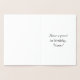 La parte delantera de este elaborado y suntuoso diseño de tarjetas de felicitación de Relieve metalizado de cumpleaños incluye el mensaje "Feliz primer cumpleaños", en un texto de estilo de escritura opulento. El interior tiene un mensaje de bienvenida de cumpleaños personalizado, o tal vez podría ser borrado y dejado en blanco si se va a escribir un mensaje a mano. Una tarjeta de felicitación formal y personalizada de cumpleaños como esta podría ser usada para celebrar el primer cumpleaños de alguien. [~Z0000555]