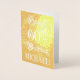 The front of this ornate and elegant birthday themed foil greeting card design features the message “Happy 60th Birthday,” in opulent script style text. The inside has a custom birthday greeting message, or could perhaps be cleared and left blank if a message is to be written by hand instead. A fancy, customized birthday greeting card like this might be sent in celebration of somebody’s sixtieth birthday. [~Z0000555]