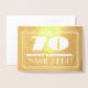 El diseño de esta tarjeta de felicitación de Relieve metalizado inspirada en el estilo de los años 20-30 presenta un gran estilo Art Déco inspirado en el número "70", el mensaje "FELIZ CUMPLEAÑOS", un nombre personalizado y un patrón fronterizo compuesto de líneas. El interior presenta un mensaje de bienvenida de cumpleaños personalizado, o tal vez podría ser borrado y dejado en blanco si se va a escribir un mensaje a mano. Una tarjeta de cumpleaños de personalizable como esta podría ser una manera elegante de enviar un mensaje para celebrar el septuagésimo cumpleaños de alguien. [~Z0000508]