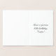 The front of this opulent and luxurious birthday foil greeting card design features the message “Happy 97th Birthday,” in lavish script style text. The inside has a personalized birthday greeting message, or could perhaps be cleared and left blank if a message is to be written by hand instead. An elegant, customizable birthday greeting card like this might be a respectable way to deliver some birthday wishes to somebody who is celebrating their ninety-seventh birthday. [~Z0000555]