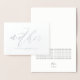 Elegante tarjeta del día de la boda con las palabras "A mi madre en el día de mi boda" en el frente en verdadero Relieve metalizado. En el interior, reemplace los campos de texto por el mensaje personalizado, o puede eliminarlos todos y escribirlos a mano.