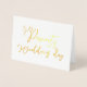 Una magnífica tarjeta del día de la boda, muestra el texto en un hermoso estilo con letras.