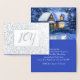 Alegría | Felices fiestas | Feliz Navidad. Joy Script y Snowy Village pintando cartas personalizadas Navidades de lujo Real Relieve metalizado tarjetas de felicitación. Tarjetas de correspondencia, favores y regalos disponibles en la categoría Navidades y Año Nuevo de nuestra tienda.