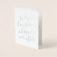 Esta sencilla y elegante tarjeta de boda cuenta con una impresión de foil con el saludo "Al amor, la risa y la felicidad eterna". Personaliza el interior con una foto sentimental y un mensaje dulce. Perfecta para enviar como tarjeta de felicitaciones de boda, o incluso para usar como tarjeta para escribir tus votos o carta de amor el día de tu boda.