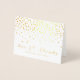 Gracias a los invitados bodas con nuestras elegantes tarjetas de Relieve metalizado dorado que incluyen confeti festivo y "amor y agradecimiento" en la parte delantera. Personaliza con tus nombres debajo de Relieve metalizado dorado. En el interior, agregue una sola foto de sangre completa y un mensaje personalizado.