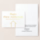 Esta hermosa tarjeta Happy Home Aniversario está hecha personalizado con el nombre de tu verdadera compañía bajo la tipografía de la moda. Estas elegantes tarjetas de Relieve metalizado dorado cuentan con un sencillo dibujo de una casa. Son perfectas para enviar a clientes que han comprado su casa para recordarles que deben consultar a amigos y familiares que buscan comprar o vender su casa. El marketing de negocios de bienes raíces significa llegar a clientes repetidos y pedir sus remisiones.