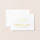 Mini gracias notecard que está doblado, con el nombre de su empresa y el logo de su negocio en la portada impreso con Relieve metalizado dorado. Añade tu nota de agradecimiento a mano dentro, y el nombre y dirección de tu empresa o información de contacto adicional en la parte posterior. Una tarjeta de agradecimiento profesional y elegante para su negocio.