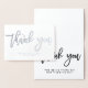 Relieve metalizado plateado real y boda negro Gracias tarjetas (horizontales) con texto negro personalizado, impreso en fondo gris, con sobre gris