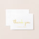 Un diseño moderno sencillo, de inspiración retro, con las palabras "gracias" en letra de escritura a mano en Relieve metalizado oro real. Ideal para bodas. Personalízalo con los nombres de la novia y del novio en letra sans serif. También disponible en Relieve metalizado plateado real.