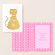 Tarjeta Con Relieve Metalizado Bonito Niña Rosa Gato Baby Shower Gracias