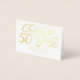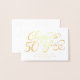 Esta tarjeta de aniversario de bodas de 50 años presenta auténtico papel de aluminio dorado y se puede personalizar con su propio mensaje de aniversario. También es realmente muy asequible. Brindis por 50 años se muestra en una hermosa fuente de escritura con florituras. También puede cambiar el tipo de papel a gris.