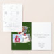 Esta tarjeta de Relieve metalizado plateado con copo de nieve verde para 3 navidades de fotos es el saludo perfecto de vacaciones modernas. La parte delantera de la tarjeta dice "ten un navidad alegre" en un Relieve metalizado de plata real y magnífico. Personalice la tarjeta con su nombre de familia, el saludo interno, los nombres y el año. Añade tus 3 fotos familiares favoritas en el interior de la tarjeta.