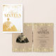 Invitación de tarjeta de cumpleaños número 16 dorada elegante glamurosa y brillante con fuente de escritura a mano y gotas de foil. Personalízala con tu propia información y gusto.