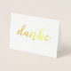 Esta elegante tarjeta es perfecta para cualquier momento que necesite agradecer a alguien por un regalo o amabilidad. La palabra alemana "danke" está en letras de guión de pincel (pincel), en Relieve metalizado oro real. El interior de la tarjeta está en blanco para su mensaje personal. ¡Excelente para hablantes de alemán, estudiantes o profesores!