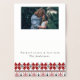 Envíe a alguien saludos de temporada más cálidos con esta tarjeta única. En la parte delantera se lee un poema estacional: "El chocolate caliente y la nieve y el fuego se revuelcan".... porque no hay más sensación de calor que beber chocolate caliente delante de un hogar mientras nieva afuera. El texto está decorado con un bonito patrón de suéter de invierno de Fair Isle. El patrón de la isla justa se repite en el interior, donde puede agregar su propia fotografía así como un mensaje a sus destinatarios.