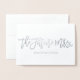 Una forma divertida y creativa de hacer saber a todos que estás comprometido. Este diseño presenta la frase "la futura Sra." con un pequeño corazón al final, escrita en una escritura moderna en auténtica hoja de estaño. El interior queda en blanco para que puedas agregar tu mensaje personalizado.