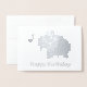 Tarjeta Con Relieve Metalizado Elefante Bebé Plateado Con Globos Feliz Cumpleaños