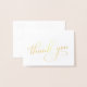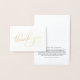 Muestre su apreciación con un toque de sofisticación con esta tarjeta de agradecimiento completa que incluye un impresionante guión de "Gracias" en el frente, disponible en su elección de Relieve metalizado de oro o plata genuino. El interior es un lienzo en blanco para el mensaje. Puede agregar una nota personalizada y su nombre en una fuente serif clásica, o dejar en blanco las notas manuscritas.