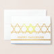 Envíe los elegantes deseos de Happy Hanukkah con una moderna tarjeta plegada de fotos personalizado. Todo el texto de esta plantilla es sencillo de personalizar. El diseño de Relieve metalizado de color azul, blanco y dorado de la tecnología presenta un diseño geométrico de la estrella de David y una tipografía minimalista de arte vintage. A la familia y amigos les encantará mostrar esta elegante tarjeta de vacaciones personalizada.