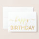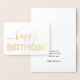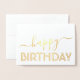 Tarjeta Con Relieve Metalizado Feliz cumpleaños Moda Script mínimo Glam Gold Real