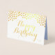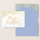 Elegante carta de cumpleaños de Relieve metalizado dorado real con gotas brillantes en blanco y un azul claro y oro falso gotas en el interior. Puede cambiar Feliz Cumpleaños desde el Menú Personalizar si desea una palabra diferente. Diseño original de SunFreeStar.