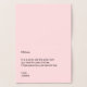 Delante: 'Feliz Día de la Madre' aparece en la escritura real de Relieve metalizado dorado. La siguiente línea de Relieve metalizado dorado dice 'A mi hermana'. Interior: El interior es rosa pálido con texto negro. Puede editar la línea superior para mostrar el nombre del destinatario o un saludo personalizado si lo desea. Hay un mensaje inspirador. Puede editar las dos líneas inferiores para mostrar el nombre del remitente.