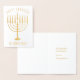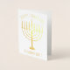 Tarjeta Con Relieve Metalizado Feliz Navidad en Chanukah Menorah