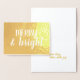 ¡Esta bonita y elegante tarjeta es perfecta para todos los que estén en la lista de Navidades! El frente tiene un fondo de verdadero Relieve metalizado de oro. Las palabras "MERRY & bright" están en caligrafía de pincel blanco (pincel), en combinación de impresión y escritura. Dentro, el mensaje de personalizable dice "que tus días brillen con alegría", en un guión de tono dorado a juego.