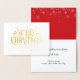 Una tarjeta de Navidad tradicional y elegante que incluye copos de nieve cayendo y un hermoso diseño tipográfico de Feliz Navidad. En el interior puedes escribir el mensaje de tu temporada especial. Incluso puedes personalizar el color de fondo en el interior para que coincida con tu color de vacaciones favorito o colocar una foto familiar encima. Diseñado por Thisisnotme©