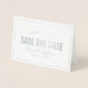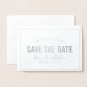 Elegante boda personalizada ahorra las tarjetas de fecha con diseño de tipografía de Relieve metalizado metálico real de Relieve metalizado dorado o plata. Personalízalo con sus nombres, fecha de boda y ubicación u otro texto personalizado. Añade tu foto de compromiso y mensaje de personalizado en el interior de las tarjetas dobladas. Haga clic en Personalizar para agregar más fotos, cambiar los tipos de letra y los colores del texto y crear uno único de los tipos Guardar la tarjeta de foto de fecha.