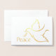 Desee a la familia y a los amigos un simple regalo de paz para las vacaciones con una elegante tarjeta de saludo plegada con una foto de paloma. Toda la redacción de esta plantilla (incluida la "paz" en el frente) es sencilla para el personalizar, por lo que resulta apropiada para Navidades, Año Nuevo, Hanukkah y Rosh Hashanah. El diseño de Relieve metalizado azul marino, blanco y dorado incluye una paloma de luto con una rama de olivo, una tipografía moderna de caligrafía y una fotografía de su elección. A la familia y a los amigos les encantará mostrar esta elegante tarjeta personalizada.