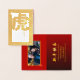 Tarjeta Con Relieve Metalizado Ideograma del Año Tigre Chino añadir foto de lujo