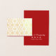 Diseño geométrico moderno de patrones web de copos de nieve en la parte delantera de la tarjeta impresa en Relieve metalizado con el saludo de Paz y Prosperidad y 4 copos de nieve impresos en el interior en blanco sobre un fondo rojo. Personalizar esto cambiando el color de fondo interior a cualquier color que desee. Personalice esto cambiando el saludo y el apellido/año. Saludo: ¡Paz y Prosperidad!