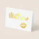 Haz una declaración audaz y glamurosa con esta impresionante tarjeta de felicitación. Con un diseño de lámina dorada lujosa, personalizada con su nombre y un par de labios besucones coquetos debajo, es la forma perfecta de expresar tu amor. Ya sea para tu novio, esposo o prometido, esta tarjeta añade un toque romántico y juguetón a tu Día de San Valentín. ¡Personaliza la tuya hoy mismo!