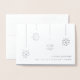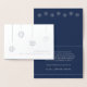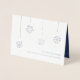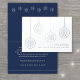 Envíe sencillamente sus elegantes deseos de vacaciones a clientes, clientes y socios de negocios con elegantes tarjetas de vacaciones de Relieve metalizado de marca de la empresa. Todo el texto de esta plantilla de tarjeta plegada es sencillo de personalizar. Los ornamentos de Navidad, el logotipo y el texto en la parte delantera están impresos con un Relieve metalizado metálico de plata real sobre un fondo blanco básico. (Para obtener los mejores resultados, la imagen del logotipo cargada debe ser negra con un fondo blanco o transparente.) El moderno diseño minimalista azul marino y blanco presenta elegantes adornos de copos de nieve de moda y una sencilla tipografía clásica. Atención: el interior es de color impreso, no de Relieve metalizado metálico. Disponibles tanto en pequeñas cantidades como a granel, estas tarjetas son adecuadas tanto para los pequeños empresarios como para los profesionales corporativos. A los clientes de negocios, familiares y amigos les encantará el lujo sofisticado de estas tarjetas de felicitación personalizadas. ¡Saludos de temporada!