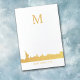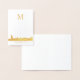 Sencilla, pero elegante, es esta tarjeta de notas con una silueta de Relieve metalizado dorado del horizonte de la ciudad de Nueva York en la parte inferior. En la parte superior está tu monograma en oro. Debajo de la imagen en el horizonte hay otro campo de texto personalizado que actualmente dice Ciudad de Nueva York. La parte posterior de la tarjeta tiene la misma imagen de perfil, pero sin el texto. El interior se deja en blanco para tu propio mensaje. ¡Versátil y memorable!