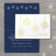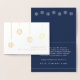 Envíe sencillamente sus deseos de vacaciones elegantes a clientes, clientes y socios de negocios con elegantes tarjetas de vacaciones de Relieve metalizado. Todo el texto de esta plantilla de tarjeta plegada es sencillo de personalizar. Los ornamentos de Navidad y el texto en la parte delantera están impresos con Relieve metalizado de oro metálico real sobre un fondo blanco básico. El moderno diseño minimalista azul marino y blanco presenta elegantes adornos de copos de nieve de moda y una sencilla tipografía clásica. Atención: el interior es de color impreso, no de Relieve metalizado metálico. Disponibles tanto en pequeñas cantidades como a granel, estas tarjetas son adecuadas tanto para los pequeños empresarios como para los profesionales corporativos. A los clientes de negocios, familiares y amigos les encantará el lujo sofisticado de estas tarjetas de felicitación personalizadas. ¡Saludos de temporada!