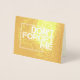 Serás inolvidable cuando les envíes esta tarjeta de recordatorio con un diseño gráfico de tipografía que dice... No me olvides... en el frente con Relieve metalizado dorado brillante y añadas tu propio texto al interior, o lo quitas y lo usas como una tarjeta de nota.