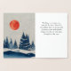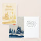 Paisaje invernal Naranja Forestal Moon Navy Tarjeta de Relieve metalizado dorado azul de dibujo de vacaciones de la Marina Moon. Tranquilo paisaje de nieve de invierno con bosque y Luna naranja. Felices vacaciones en un guión de moda. Puede cambiar el texto en la parte delantera y dentro de la tarjeta o borrarlo.