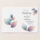 Esta imagen presenta un diseño depurado y sofisticado centrado en las delicadas hojas de color pastel. Las hojas tienen una calidad translúcida, casi etérea, con tonos suaves de azul, rosa y lavanda que se mezclan a la perfección. El minimalista fondo blanco realza la elegancia del diseño, destacando los detalles sutiles del follaje. Esto crea una estética apacible, inspirada en la naturaleza, perfecta para ocasiones modernas y románticas.