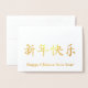 Foto personalizado personalizada de Año Nuevo chino con elegante Relieve metalizado de oro minimalista con tarjeta de vacaciones de Año Nuevo chino. Con un saludo chino eso significa felicidad en Año Nuevo. Con un texto de Relieve metalizado de oro completamente personalizable para que puedas cambiar el saludo chino, Cambiar la imagen con tu foto familiar de tu elección, personalizarla y hacerla única. Compruebe el resto de la colección para obtener suministros adicionales de fiesta, regalos y favores, decoraciones, accesorios, etc.