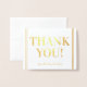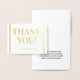 Este diseño de tarjeta de felicitación personalizado, Relieve metalizado dorado liso, incluye el mensaje "¡GRACIAS!" en el frente, junto con un mensaje personalizado en el interior. Se podría usar para mostrar agradecimiento a alguien que ha asistido a un boda, un funeral, una graduación o algún otro evento.